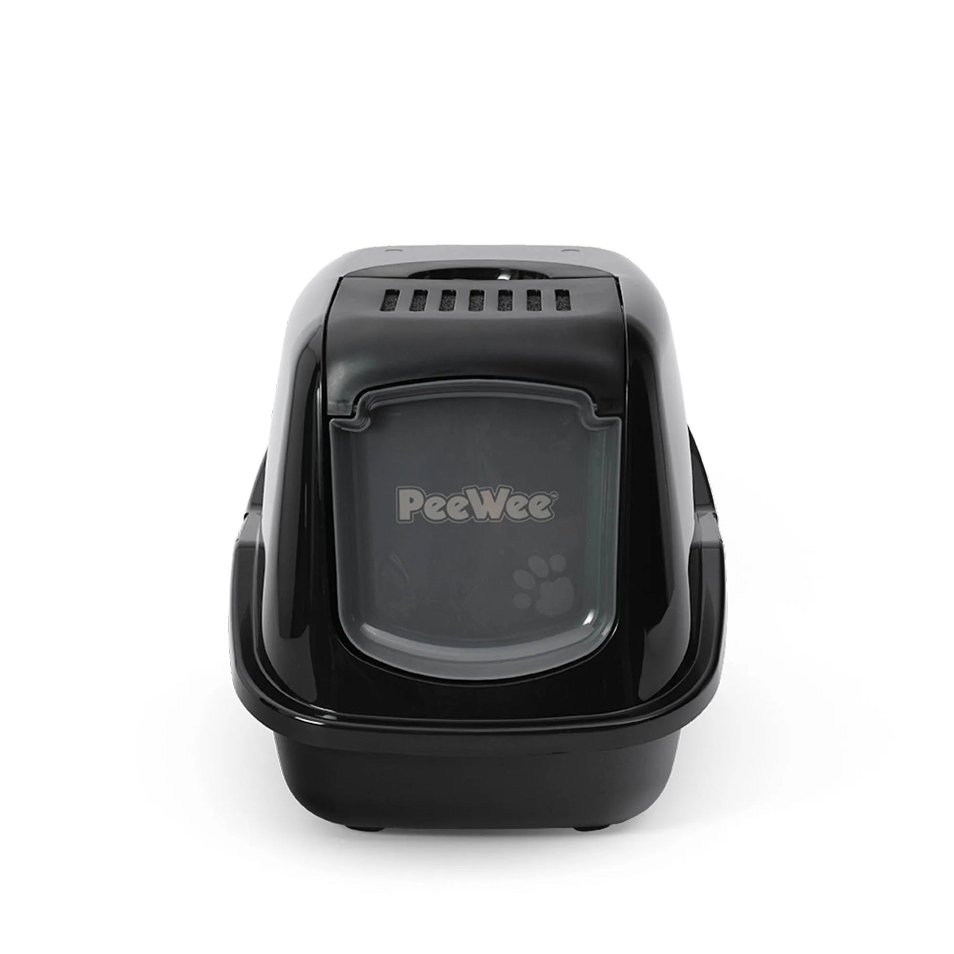 PeeWee EcoHus Katzenklo Schwarz – Starterpaket mit Haube & 3 kg Holzpellets
